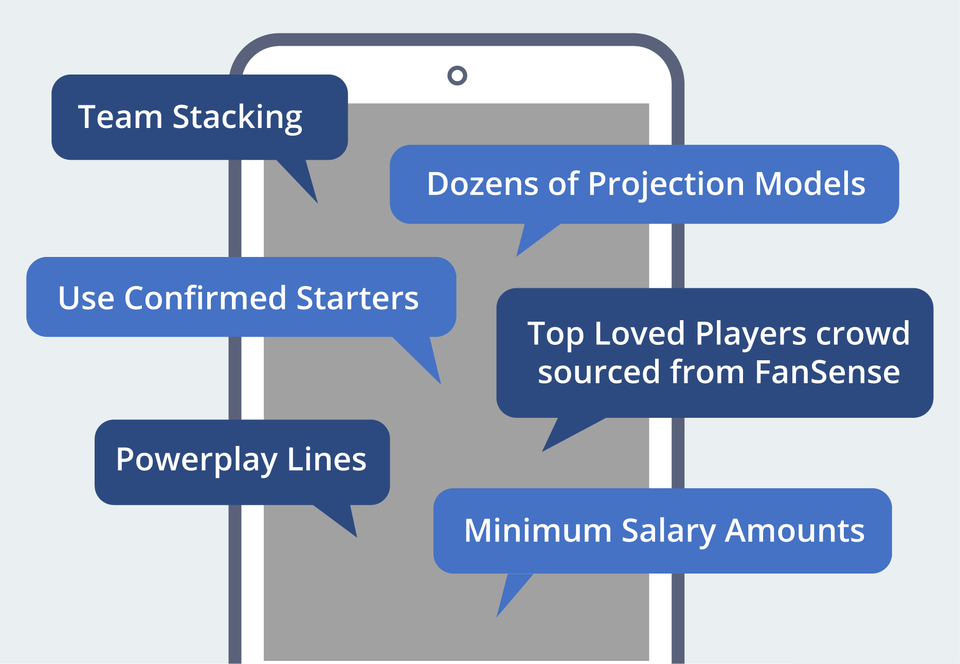 Easily manipulate your lineups with Team Stacking, Injuries, Confirmed Starters, Salary Amounts, Crowd Sourced Intuition and much more.